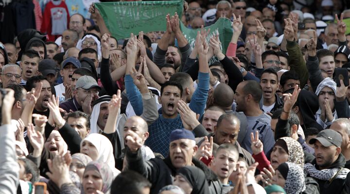 Earlier today, thousands of angry Palestinians rallied across the West Bank in a show of support for their brethren in Gaza. This was the tense scene at the Damascus Gate here in Jerusalem: