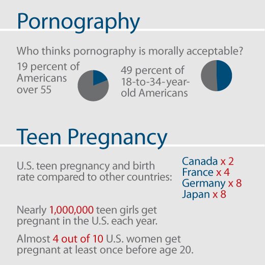 The facts still staring Americans in the face are that the U.S. has the highest rates of teen pregnancy, birth and abortion in the industrialized world. U.S. teen pregnancy and birth rates are nearly double those of Canada, four times those of France and Germany, and more than eight times those of Japan. Nearly 1 million teen girls get pregnant in the U.S. each year. Almost four out of 10 young women get pregnant at least once before they turn 20. Don’t these facts show America leads the industrialized world in a lack of morality?