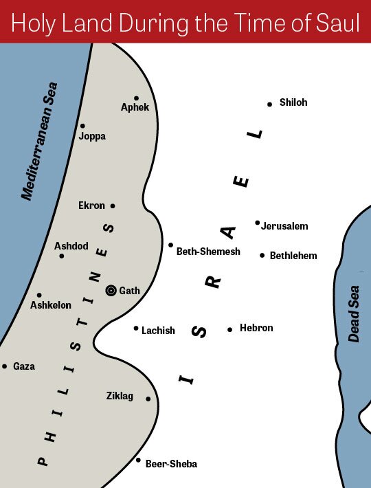 Throughout the reign of King Saul and into the reign of David, the Philistines maintained the upperhand on Israel. The Bible states directly that Philistine garrisons existed in such Israelite cities as Bethlehem and Gibeon (1 Samuel 10:5; 2 Samuel 23:14). The Philistines were so powerful that Israel was forbidden to sharpen their own iron tools, instead they had to go down to the Philistines who charged an exorbitant price (1 Samuel 13:19-21).
