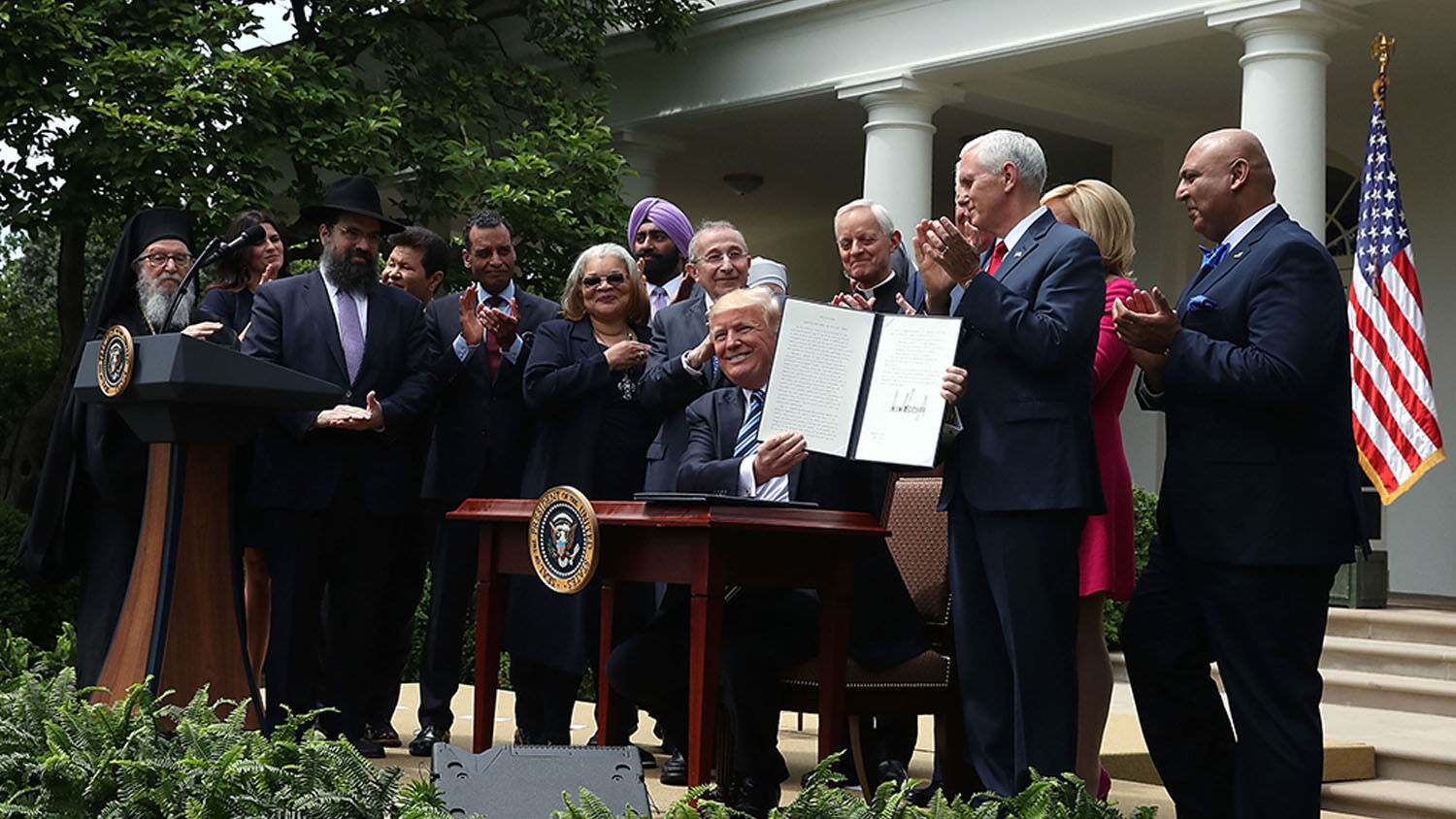 During a ceremony in the Rose Garden yesterday, Mr. Trump said, “We are giving churches their voices back.”