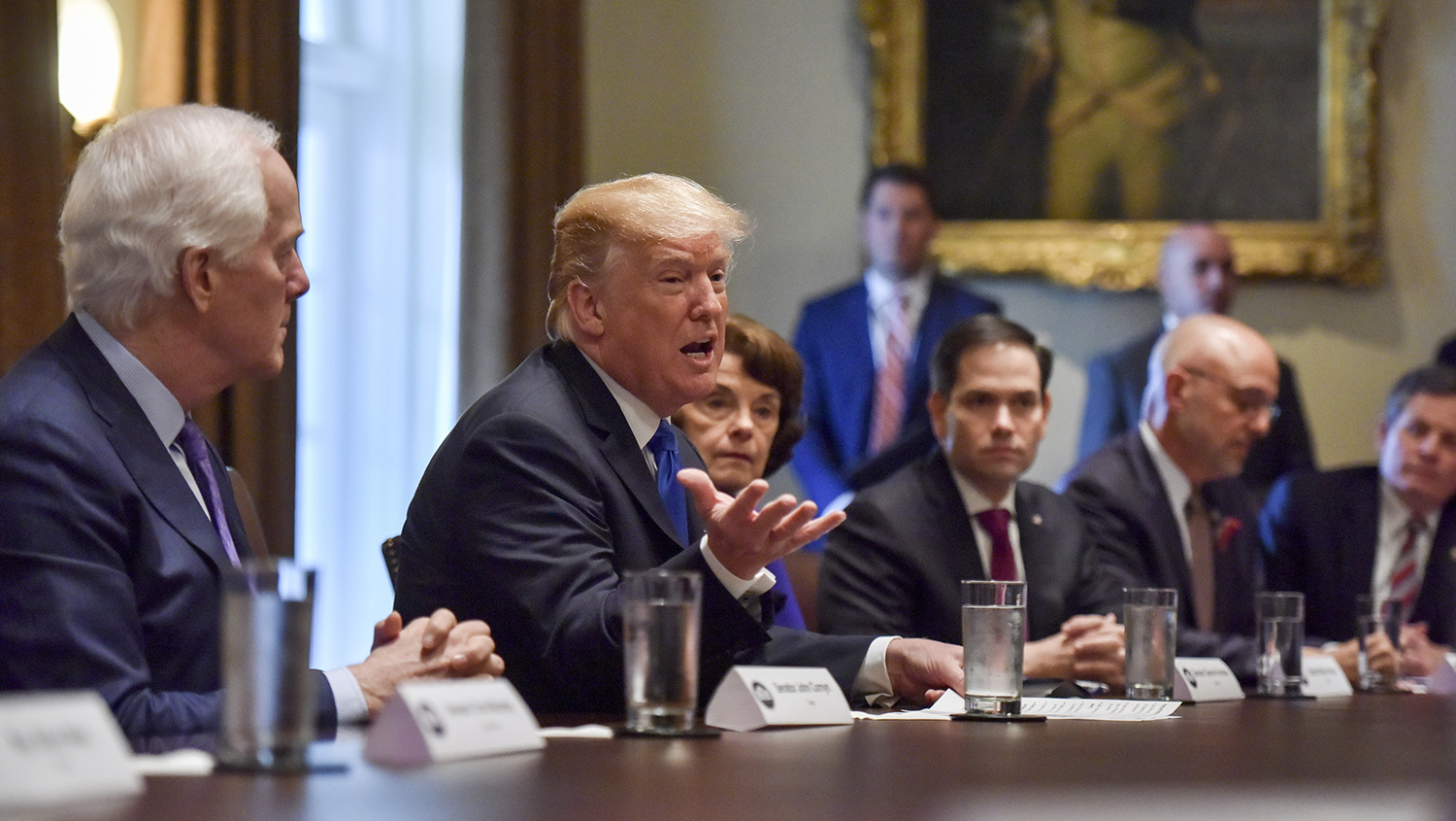 During a televised meeting with lawmakers on gun violence, President Trump called for comprehensive gun-control legislation that would alter school security, expand background checks, and restrict gun sales to young adults and the mentally ill. At one point, President Trump even suggested seizing guns from mentally ill people without going to court first. “I like taking the guns early, like in this crazy man’s case that just took place in Florida …. [T]o go to court would have taken a long time,” he said. “Take the guns first, go through due process second.”