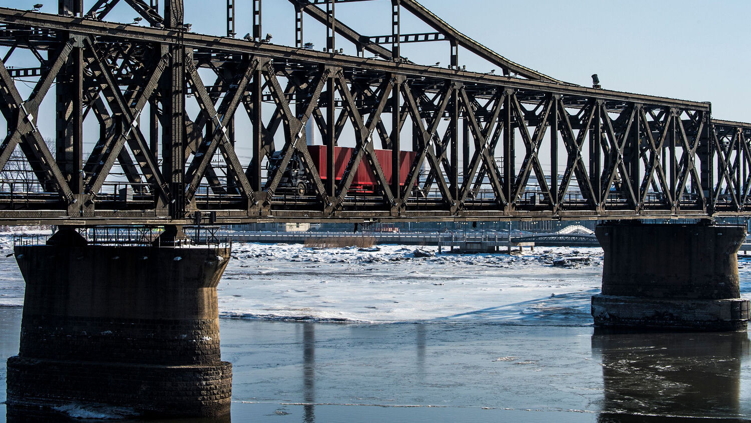A truck returns over the Friendship Bridge from the North Korean town of Sinuiju to the Chinese border city of Dandong, in China’s northeast Liaoning province.