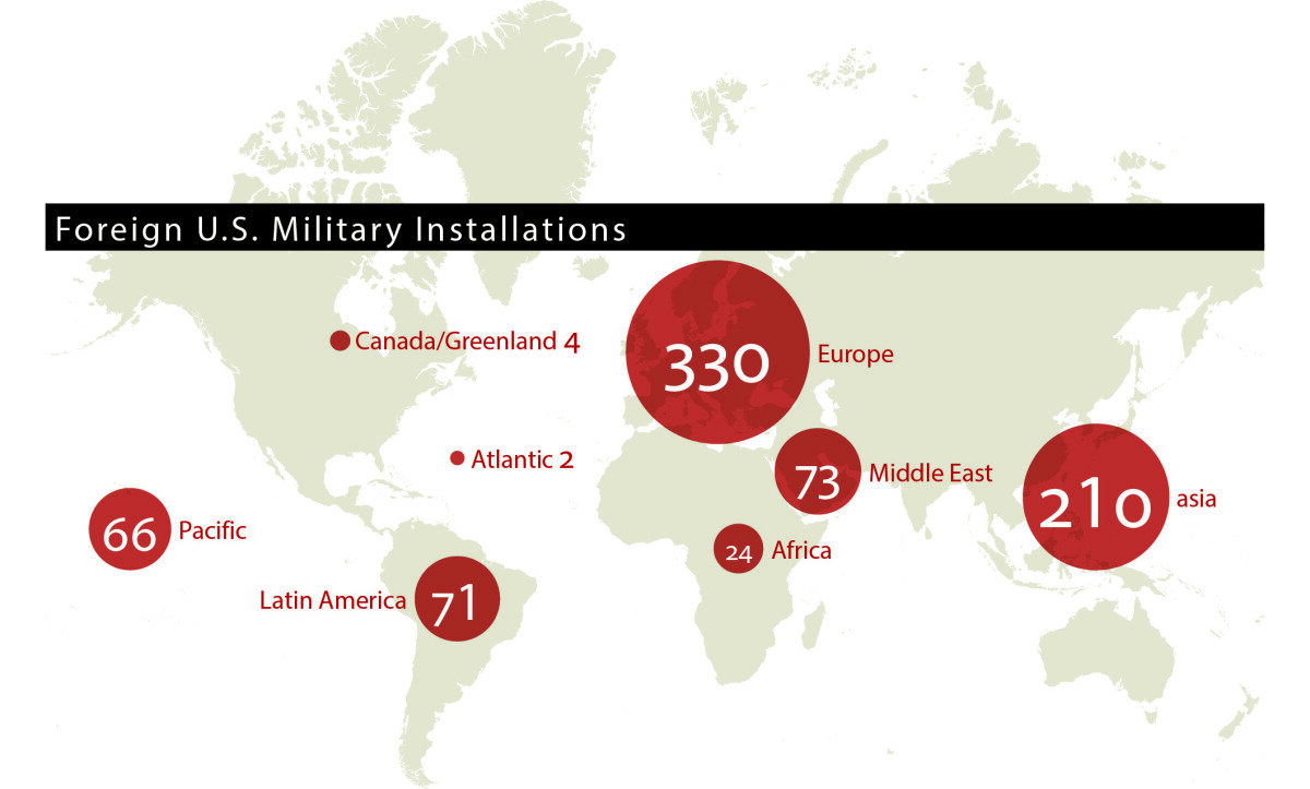 These overseas troops and military bases cost taxpayers over $156 billion per year, almost one fifth of all U.S. military spending. If the nation is forced to reduce spending, overseas bases will likely be among the first to go.