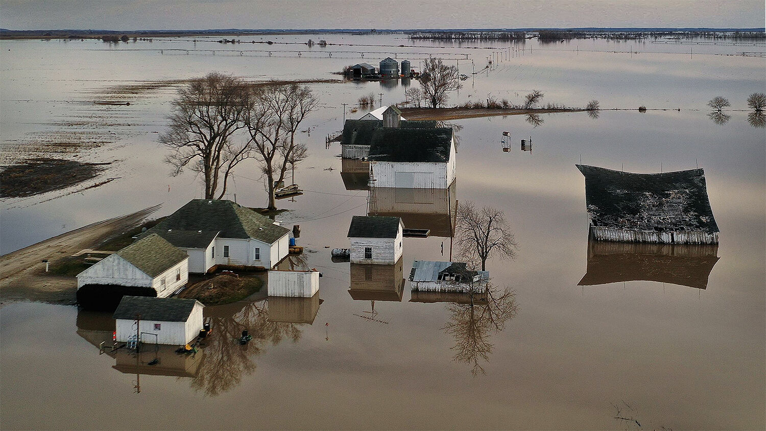 “There’s just devastation everywhere,” said Colleen Rambo, who worked out of Fremont, Nebraska, with a disaster-response team called No Town Left Behind. “The water is covering entire towns to the rooftops …. The croplands have been covered with sand. I felt like I was in the Florida beaches. … One of the farmers was telling me that this happened back in the ’50s, and they turned over the land five feet in order to bury the sand, and they can’t do that again because they’ll just bring that sand back up. So there are millions of acres that are not going to be planted this year. The amount of food that is going to be produced by the Midwest is going to be drastically reduced this year.”