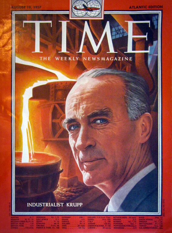 During the war, Germany’s industrial giants worked intimately with the Nazis. Perhaps the most infamous is Alfried Krupp, who supported Hitler for years and whose weapons .manufacture was basically a government department making war matériel. One of his representatives attended the 1944 meeting in which the Nazis planned to go underground.