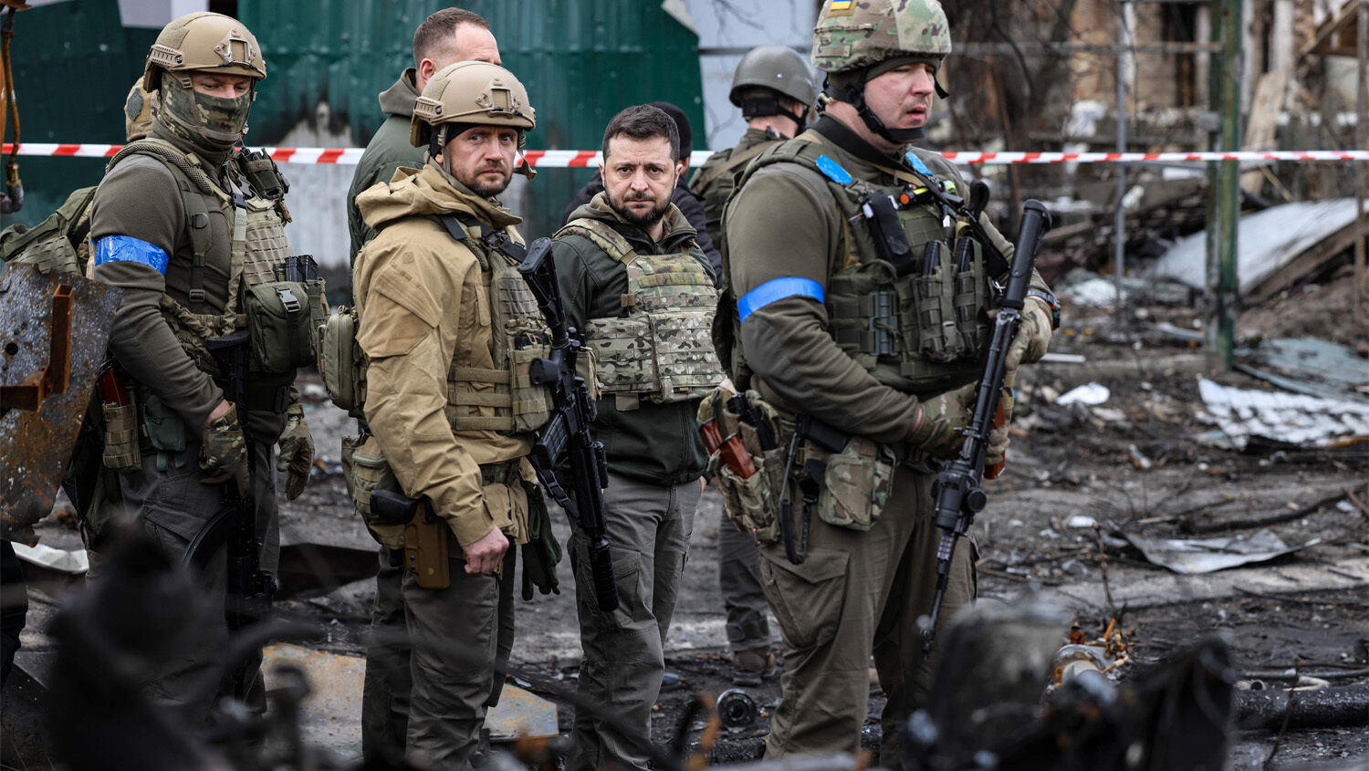 President Volodymyr Zelensky walks in the town of Bucha, just northwest of the Ukrainian capital Kyiv on April 4.