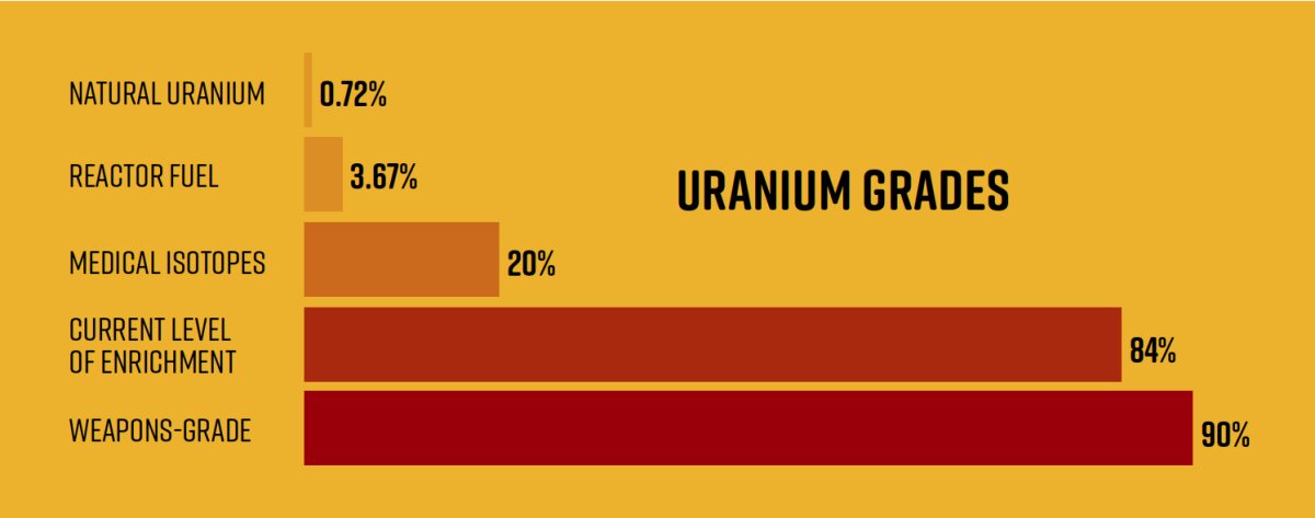 State media on Feb. 24, 2023, confirmed rumors that Iran had produced uranium at roughly 84 percent purity. Four days later, the iaea also confirmed it. It appeared to be only trace amounts, but it demonstrated Iran’s capacity to turn 60 percent-enriched material to weapons-grade material.