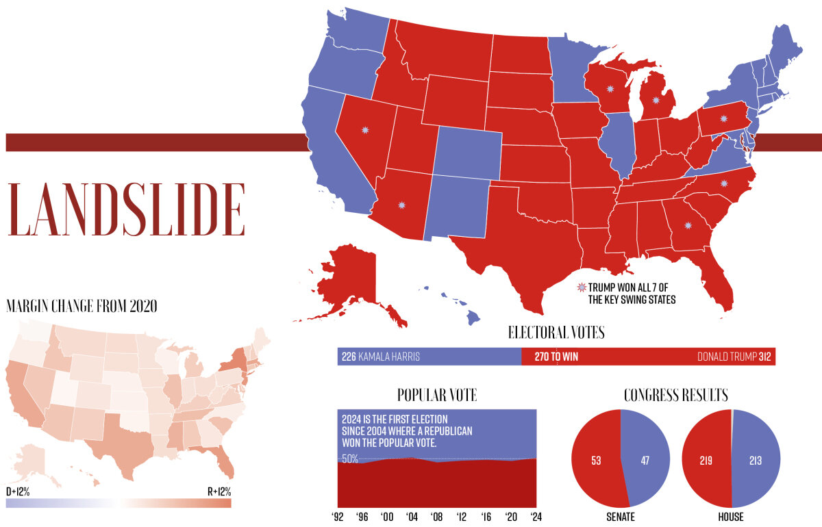 The scale of Donald Trump’s victory was truly impressive. In America’s November 5 presidential election, he won the popular vote and all seven swing states. Republicans held their majority in the House of Representatives and gained control of the Senate. When he resumes office, Trump will have considerable power.