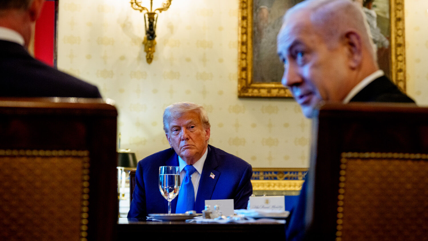 Reaching over the table for the letter, Trump responded: “Wow. Thank you very much. This I didn’t know. Wow. Thank you very much. Coming from you in particular, this is very meaningful, Bibi.”