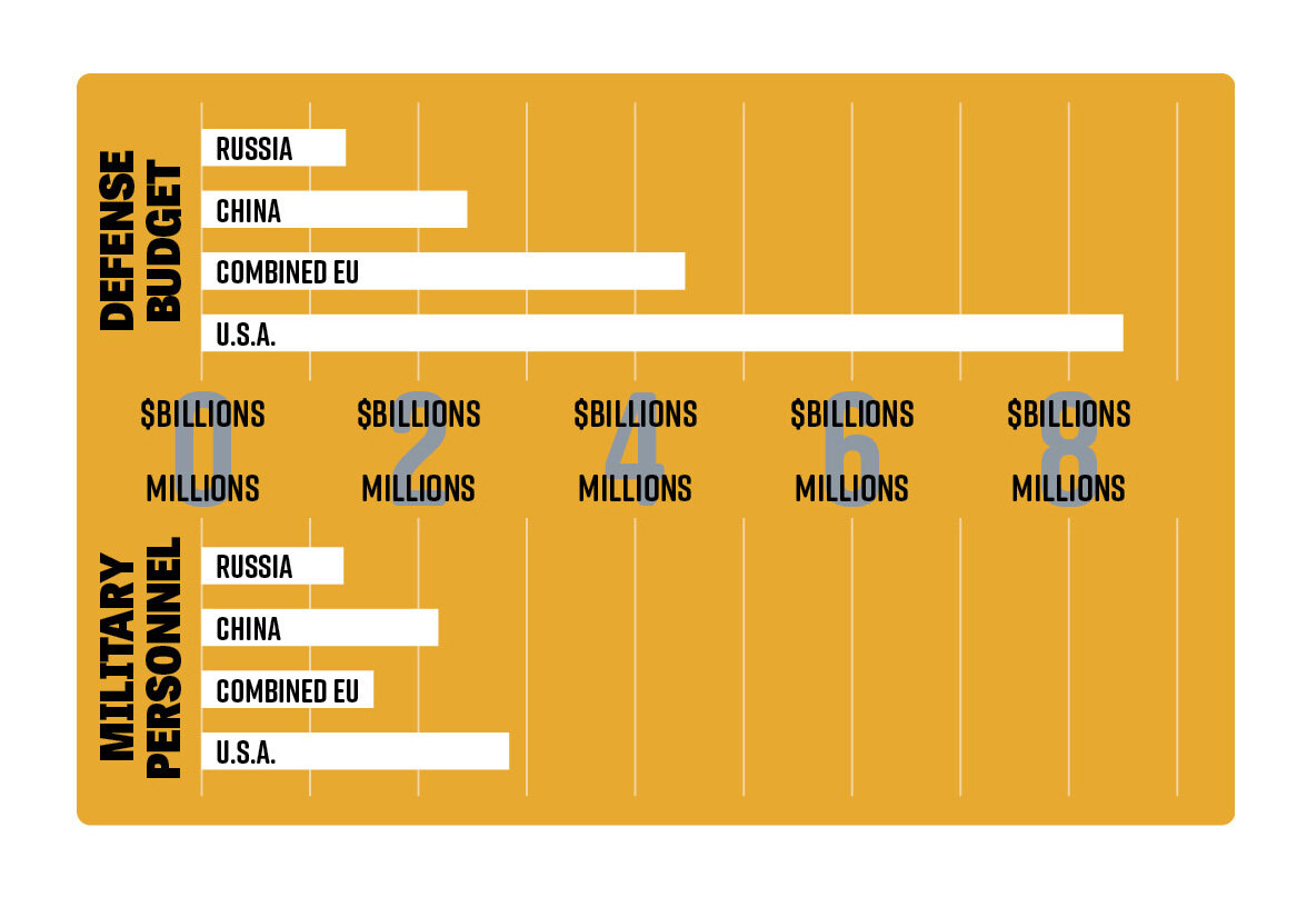 Such an EU military would have about a quarter of the defense budget of today’s nato and about half as many troops. So in a world where an EU military replaces nato, the EU would be the second-most powerful military force, with a defense budget roughly twice the size of Communist China’s military.