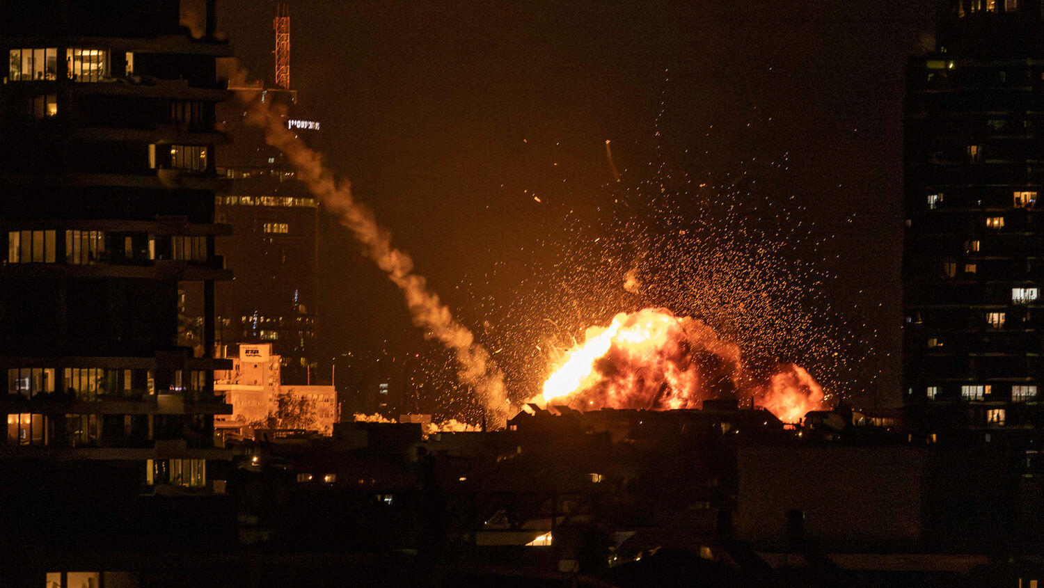 A fireball lights the sky following a missile strike on Tel Aviv on February 28. The United States and Israel launched strikes against Iran on February 28, with Israel’s public broadcaster reporting that the Iranian supreme leader had been targeted, as the Islamic republic retaliated with barrages of missiles at Gulf states and Israel