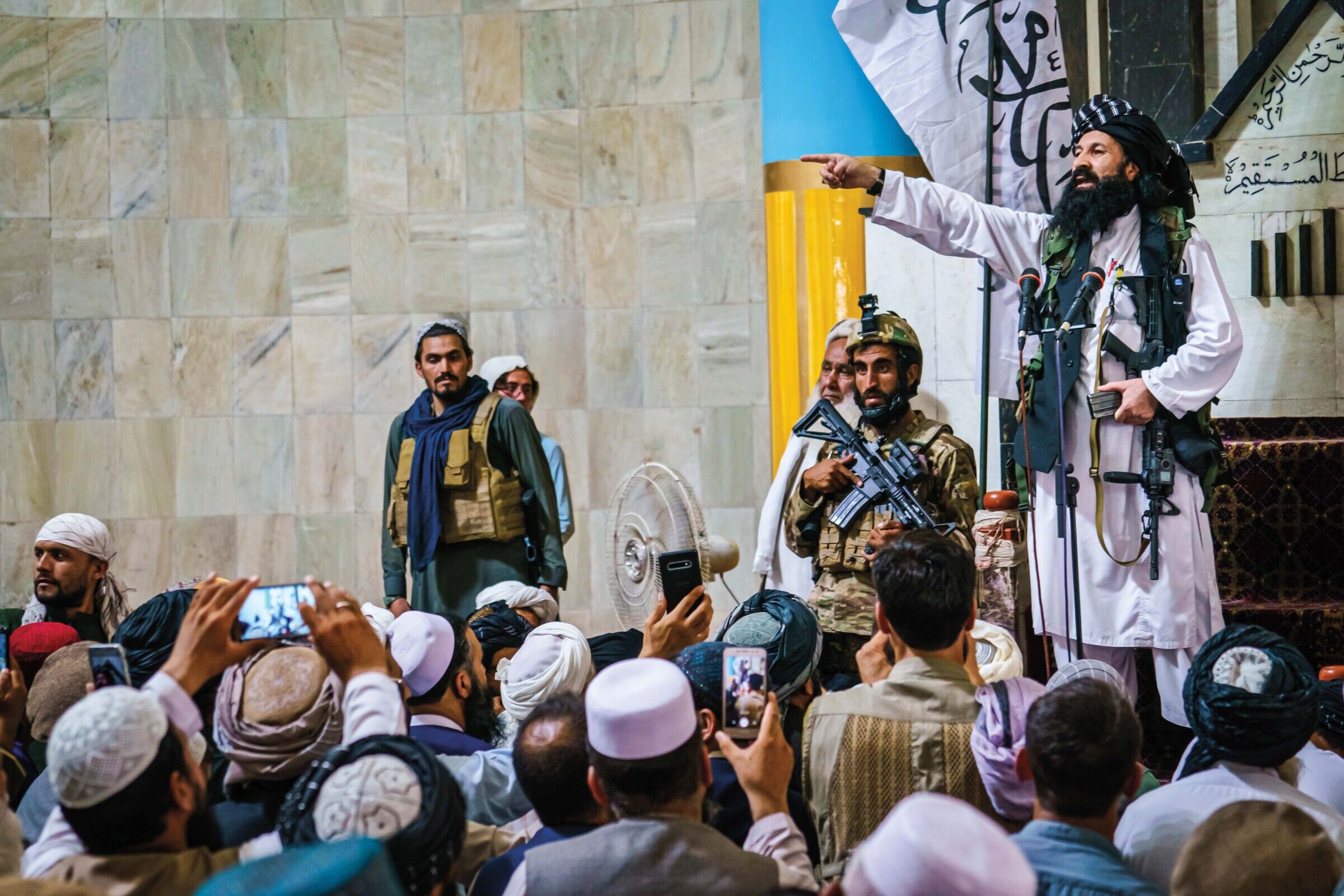 Khalil al-Rahman Haqqani, a wanted radical Islamist leader with a $5 million U.S. bounty on his head, now openly preaches at a mosque in Kabul while holding a U.S. rifle.